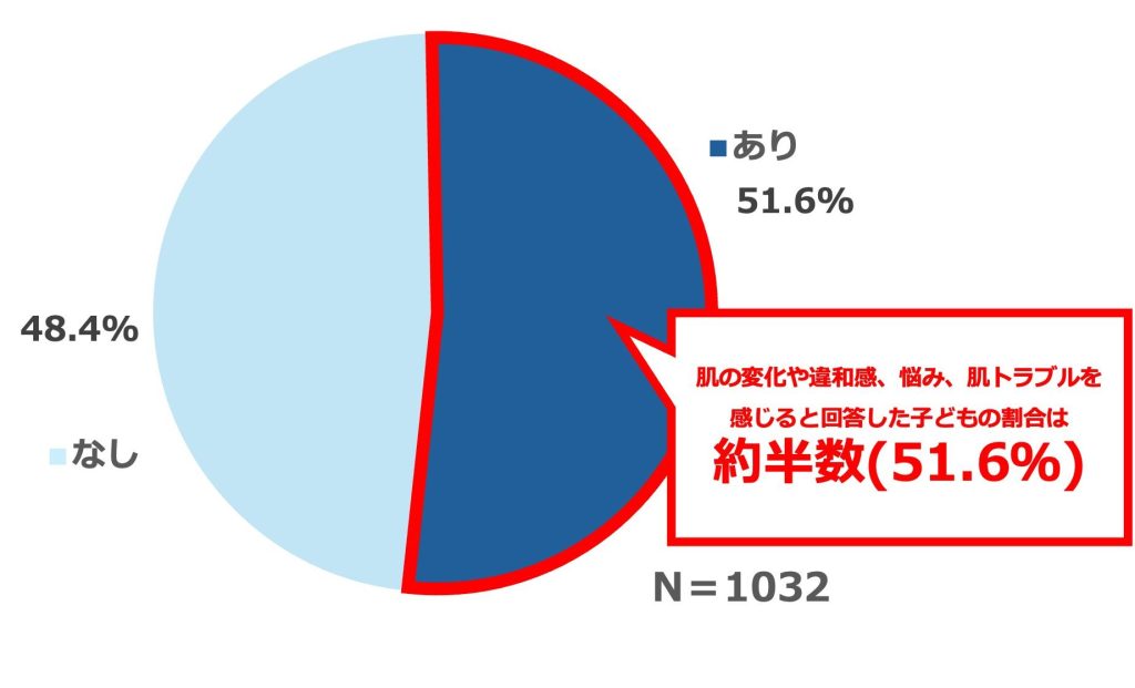 化粧品の会社「ファンケル」の調査で、小学4・5・6年生の2人に1人が肌トラブルを経験していることが判明!肌トラブルの原因の1位は「乾燥」、2位は「にきび」、3位は「顔の赤み」!