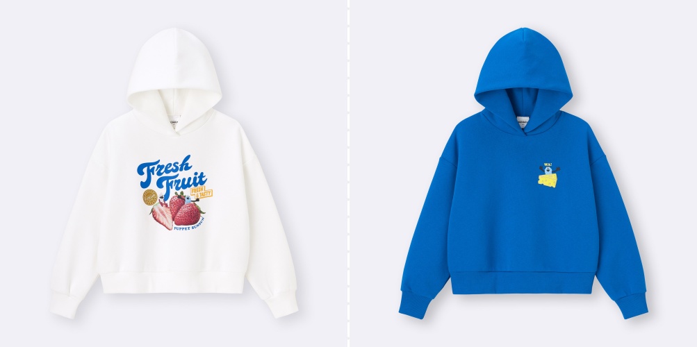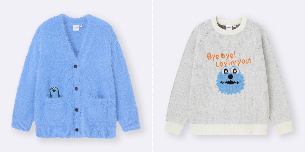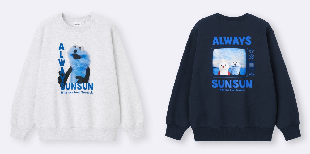 これから寒くなる季節にぴったりな「オーバーサイズニットプルオーバー」(ブルー、ナチュラル 各2,990円)や、裏起毛の「ヘビーウェイトスウェットプルオーバー」(ライトグレー、ネイビー 各2,990円)には、キュートなスンスンや親友のノンノンの表情がデザインされていて、ファッションアイテムとしても活躍しそう☆