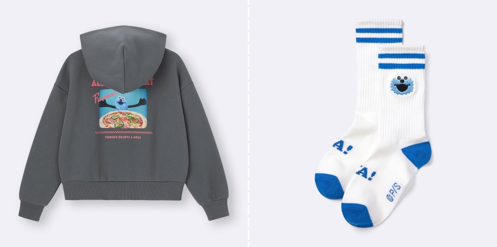 ティーン向けのアイテムは4タイプあって、ポップでキュートなデザインの、「GIRLSヘビーウェイトスウェットパーカJR」(オフホワイト、ブルー、ダークグレー 各2,290円)や、足元のポイントとなる靴下「GIRLSソックスJR」(オフホワイト、ブラック、ネイビー 各390円)など、全部ほしくなっちゃう~!!