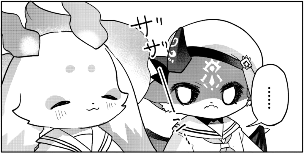 でびでび・でびる:やっぱあれかな。ぼくが最強になってるってやつを正しく描く回はほしいよね! ちょー恐ろしくて、白生き物はもう「ははーーーーっ!」ってなってる。まぁその現実寄りの・・・しぇあはうすしてないときのぼくたち寄りもやっぱ欲しいよね!