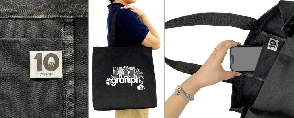 「イオン ブラックフライデーセール」が今年で10周年をむかえることを記念して、グラニフの人気オリジナルキャラクターたちが集結☆キャラクターたちがデザインされた、お買いものやおでかけに使いやすい、色やサイズ感にこだわったトートバッグ♪ ライトグレー、ブラック、ブラウンの3色で、開けるまで何色がでるかわからないブラインドパッケージになっているよ♪