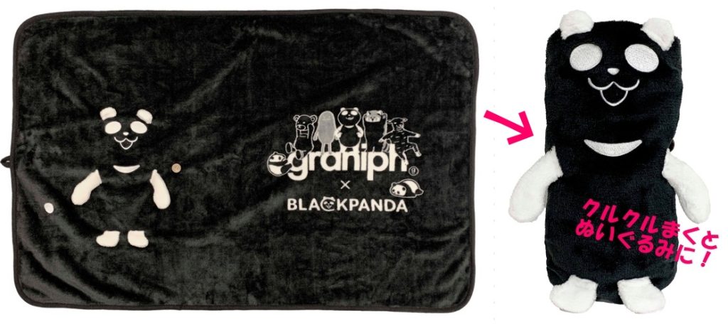 これからのシーズンにあると便利なふわふわブランケット♪ブランケットをくるくると巻いて収納するとブラックパンダが完成するよ~!