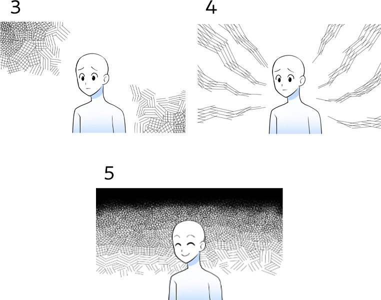 5)上から下へ、アミ目の濃さがグラデーションになるように描く