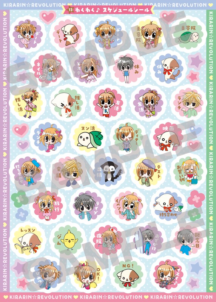 ほかにも「きらりんカフェシール」や「名場面シール」や「アイドル☆韓国プリ風シール」「12星座シール」など『きらりん☆レボリューション』の魅力がたっぷりつまったシールだよ。
