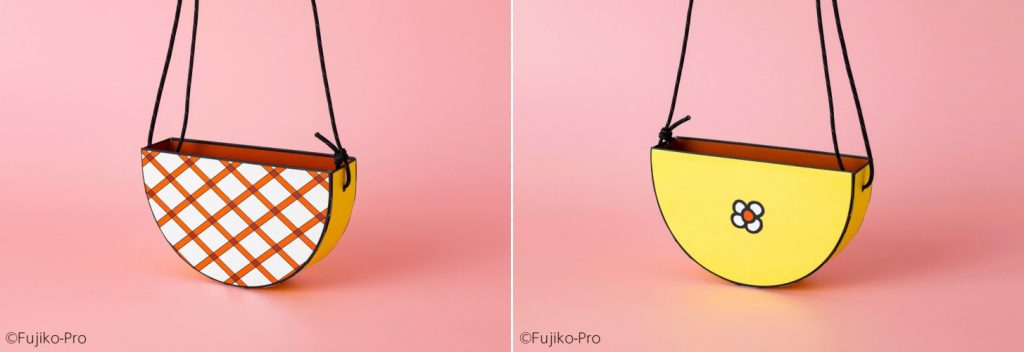 チェック柄がかわいいドラミちゃんのポケットが、紙製のサコッシュに♪うら側はしっぽのお花のデザインになっていてリバーシブルで楽しめるよ☆