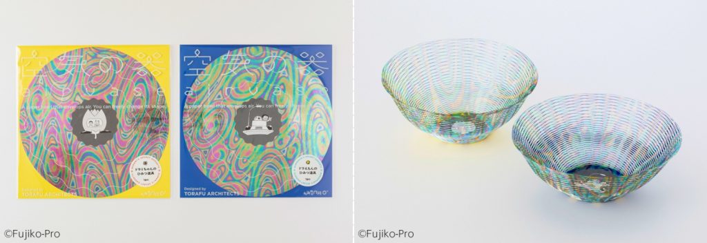空気を包みこむように、形を自由に変えることができる紙の「空気の器」シリーズにドラミちゃんバージョンが登場!ドラミちゃんのかわいい「ひみつ道具」をモチーフに、両面リバーシブルで2種類の柄が楽しめるデザイン♪