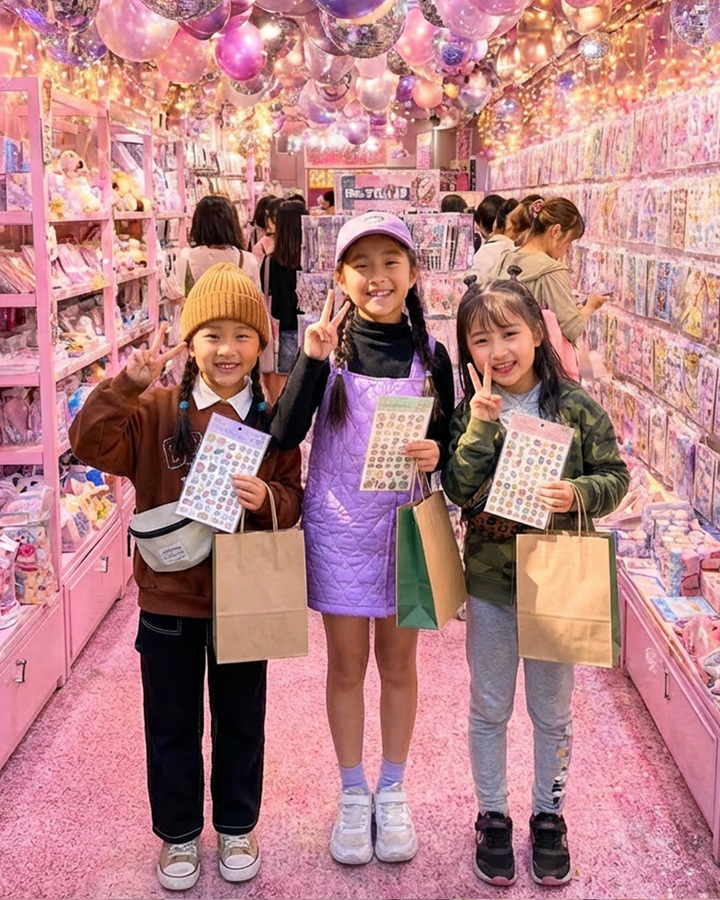 「PETA L♡VE」は、年れいに関係なく楽しめる場所♪友だちどうしで行っても、家族で行っても楽しめちゃう体験型のシールショップだよ♪