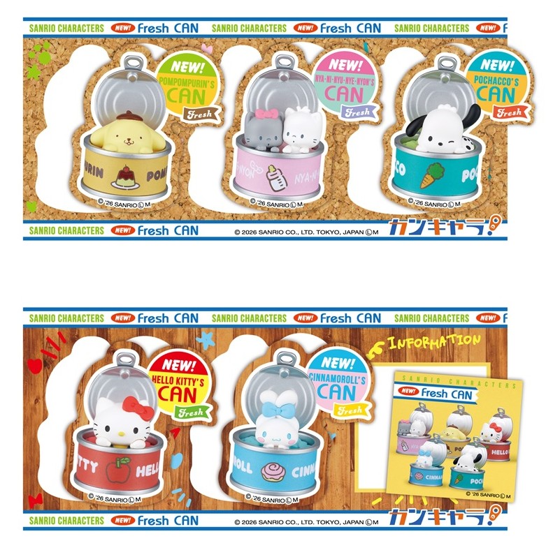 第1弾商品は「カンキャラ!サンリオキャラクターズ」(1回300円)で、「ハローキティ」「ポムポムプリン」「ポチャッコ」「シナモロール」「ニャニィニュニェニョン」の全5種類をラインアップ☆
