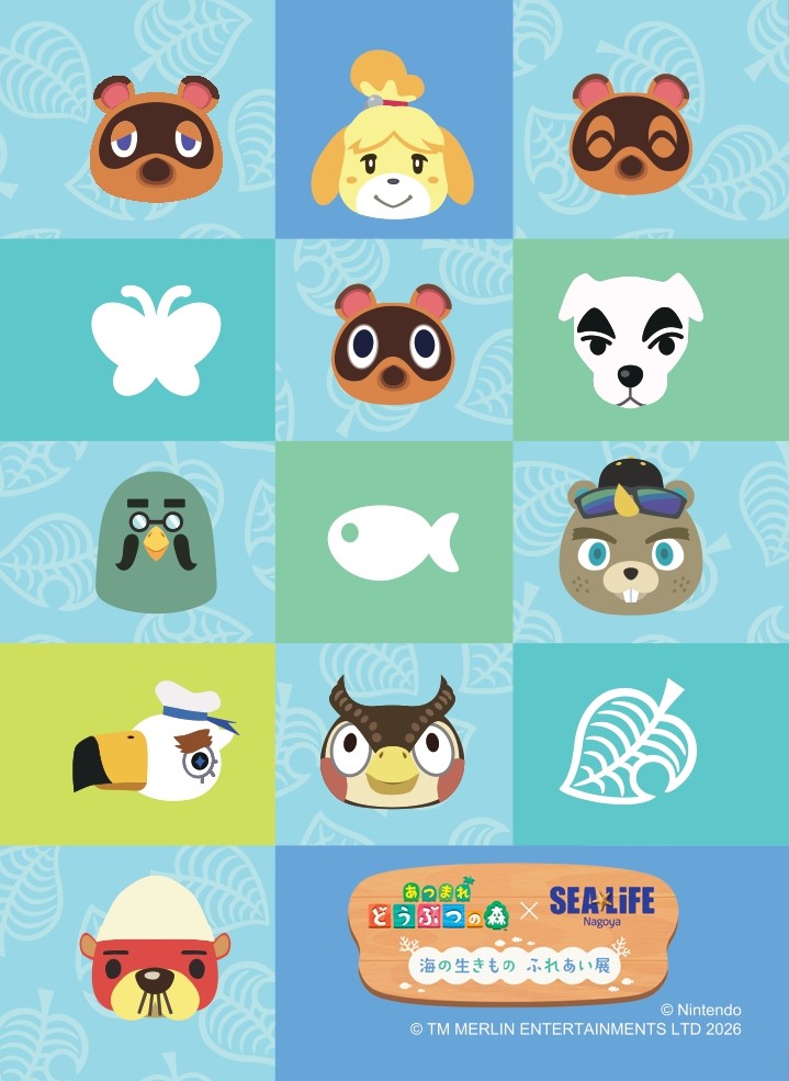 「名古屋シーライフ水族館」で、Nintendo Switch用のゲームソフト「あつまれ どうぶつの森」とコラボレーションした、「あつまれ どうぶつの森×名古屋シーライフ水族館 海の生きもの ふれあい展」が、2026年1月30日(金)~2026年5月11日(月)まで、開催されるよ!