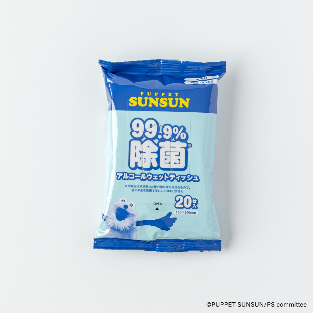 除菌99.9%のアルコールウェットティッシュ(無香料、アロエエキス配合)。携帯に便利なコンパクトサイズ(シートサイズ:150×200mm)と、しっかりふける大判厚手(シートサイズ:200×300mm メッシュタイプ)の2タイプ(各300円)があるよ♪