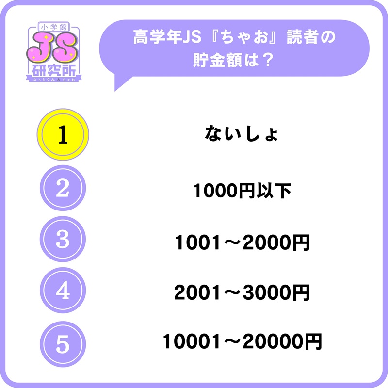 おこづかいはそれぞれのおうちで金額が決まっていると思うけど、ちゃおっ娘のみんなは使い道を考えながら、貯金の金額を決めたりと、おこづかいをしっかりと管理している子が多いってわかったよ☆