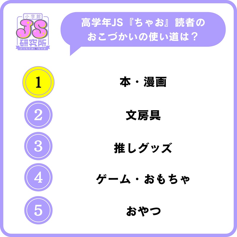 流行を敏感にキャッチしているちゃおっ娘らしく、流行りのものがおこづかいの使い道にも表れているみたい♪