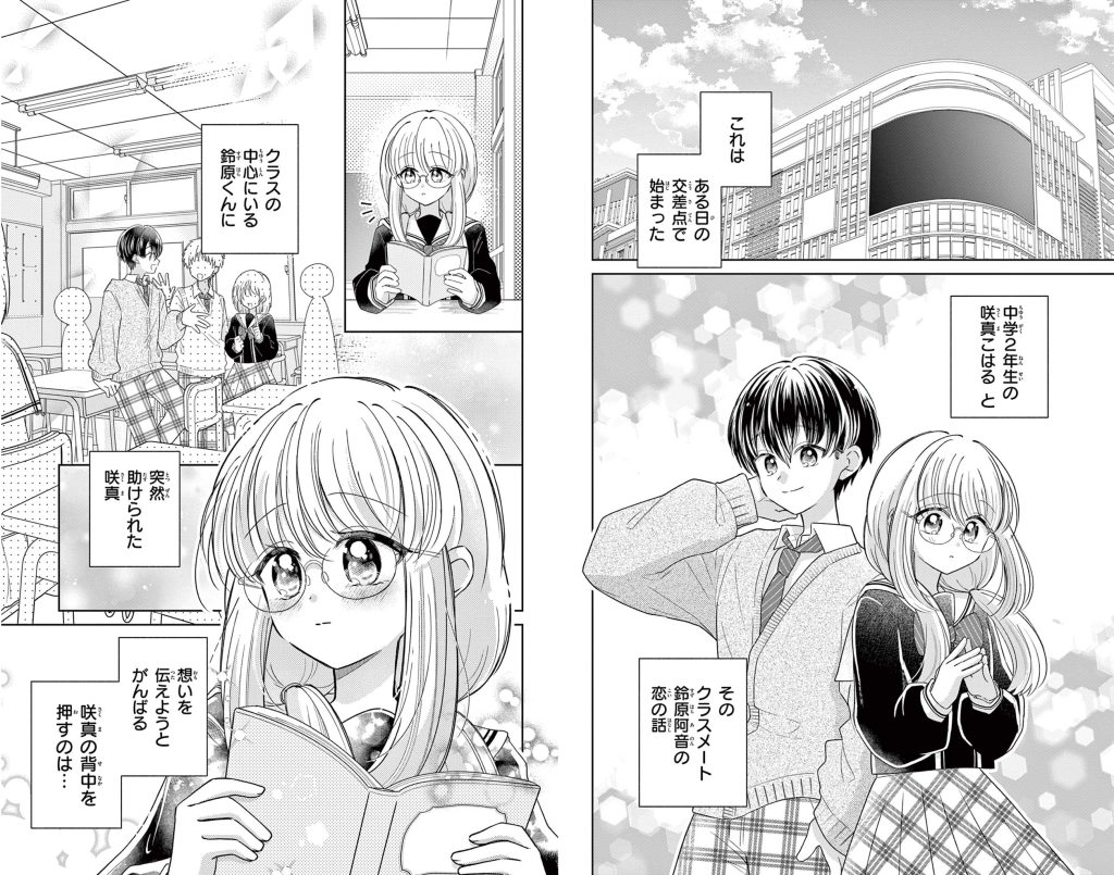 休日の交差点。偶然助けてくれたクラスの人気者・鈴原くんに恋をしたこはる。内気でなかなか想いを伝えられないこはるは、大好きな「aoen」の音楽やメンバーたちの姿に背中を押され、恋をがんばることを決意する。