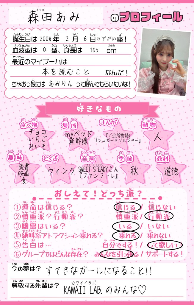 ▶MORE STARがちゃおプラスに初登場!! メンバーのみんなに、KAWAIIのルーツや小学生のころの夢や憧れの人を聞いてみたよ!超カワ♥な自撮りもチェック♪