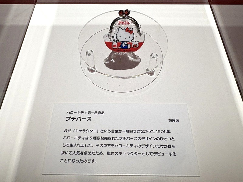 1974年にハローキティは5種類の小さなお財布「プチパース」のデザインのひとつとして生まれたよ♪展示会では第1号商品のプチパース(復刻品)も展示☆