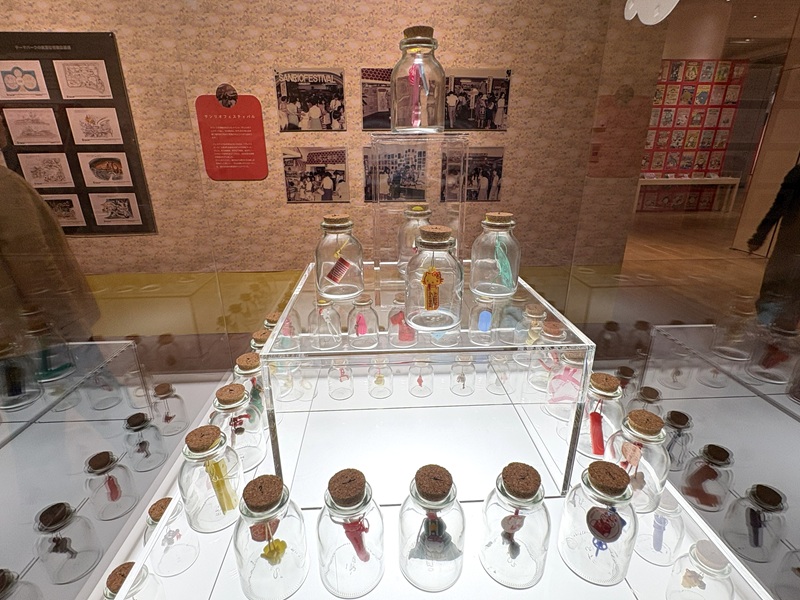 ショップでお買いものをしたときに付けてくれるチャームが壁やガラスのビンに入ってズラリとならんでいて、見に来ていたお客さんは「なつかしい~!」「これもらったことあるよ!」と話していたよ♪